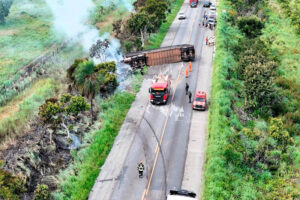 Corpo de Bombeiros socorre vítima e combate incêndio em carreta após acidente na BR-070 Fevereiro 18, 2026
