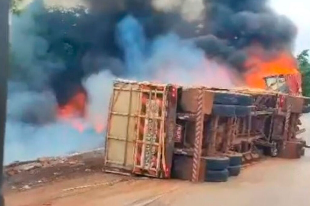 Carreta tombou e em seguida pegou fogo na BR-364, região da Serra de São Vicente, em Santo Antônio do Leverger (34 km de Cuiabá), durante amanhã desta sexta-feira (23). Devido ao acidente, a rodovia sentido sul, Cuiabá a Rondonópolis, está totalmente interditada. A ocorrência está em andamento. De acordo com a concessionária Nova Rota do […]