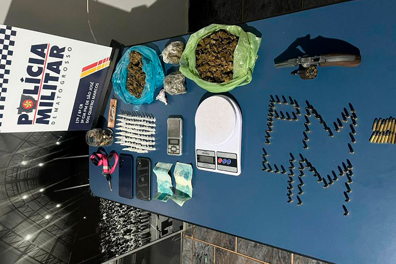 Policiais militares da 3ª Companhia Independente prenderam dois homens, de 23 e 25 anos, por tráfico ilícito de drogas e porte ilegal de arma de fogo, na noite desta quarta-feira (24.9), em São José dos Quatro Marcos. Com os suspeitos, foram encontrados um revólver calibre .22 e 107 munições do mesmo calibre, 99 porções de […]