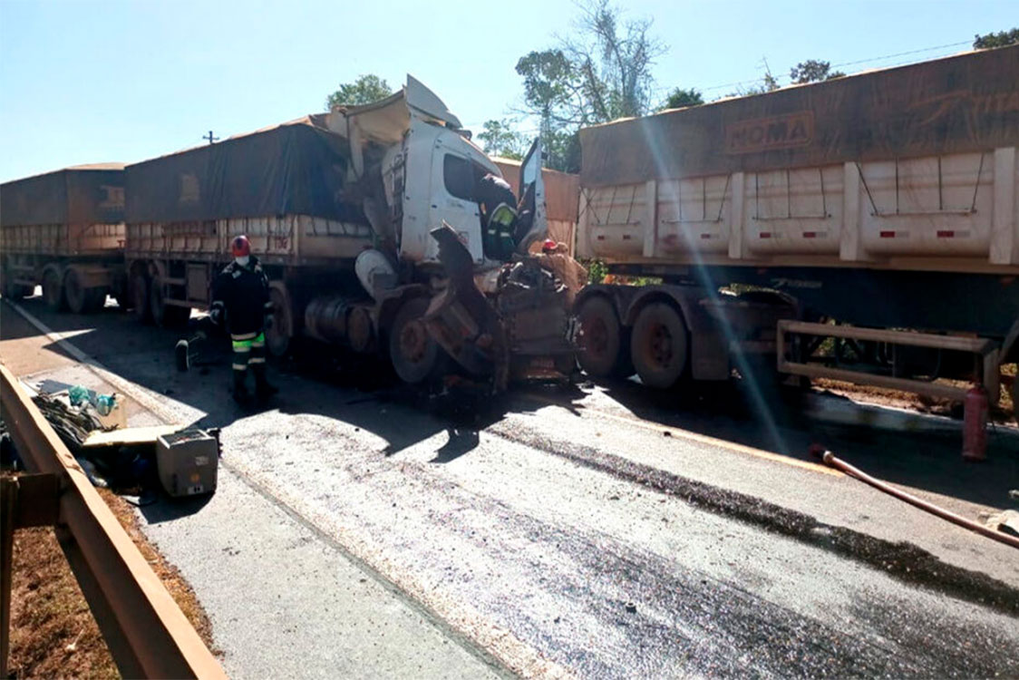 Acidente entre 3 veículos de carga mata um e fecha rodovia em MT