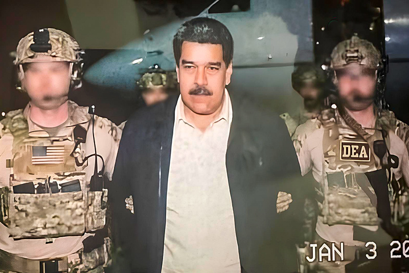 Maduro e sua esposa , detidos durante a noite em sua casa em uma base militar, estavam a bordo de um navio de guerra americano a caminho de Nova York, onde enfrentariam acusações criminais relacionadas a uma denúncia do Departamento de Justiça que os acusava de participação em uma conspiração de narcoterrorismo.