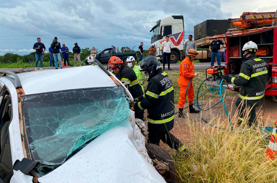 O Corpo de Bombeiros Militar de Mato Grosso (CBMMT) realizou, na manhã desta sexta-feira (20.2), o desencarceramento de duas vítimas fatais que ficaram presa às ferragens após um acidente de trânsito na Rodovia dos Imigrantes, aproximadamente 5 km antes do Trevo do Lagarto, em Várzea Grande.