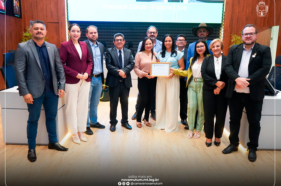 No espaço destinado aos Assuntos Gerais, a sessão reservou um momento especial para homenagear a jornalista Elissa Neves, ex-servidora da Casa. Ela recebeu moção de aplausos do plenário em reconhecimento aos prêmios de jornalismo conquistados ao longo dos últimos meses no estado de Mato Grosso, uma trajetória que orgulha a instituição e evidencia o potencial dos profissionais que passaram pelos quadros da Câmara Municipal.