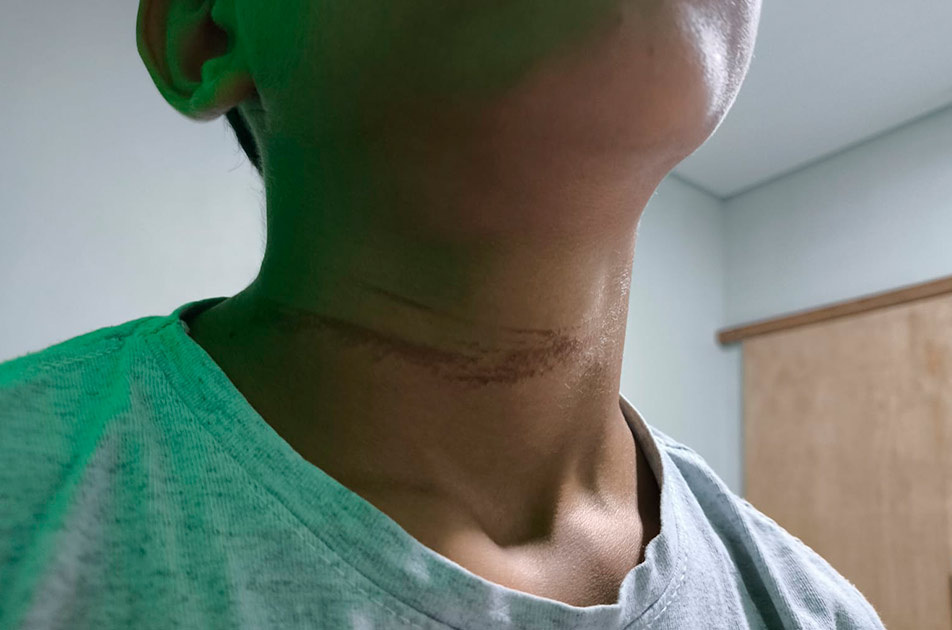 Uma criança de 10 anos ficou com o pescoço lesionado após se enroscar em um cabo de internet enquanto andava de bicicleta na calçada, no Distrito Ranchão, a cerca de 65 km de Nova Mutum.