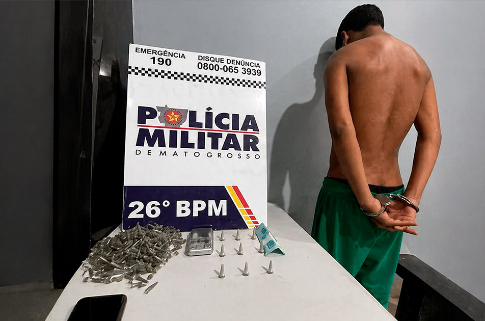 Policiais militares da Força Tática do 2º Comando Regional prenderam, nesta segunda-feira (6.10), três homens por porte ilegal de arma de fogo e tráfico ilícito de drogas, no bairro Jardim Novo Horizonte, em Várzea Grande. Um dos detidos possuía mandado de prisão em aberto. As equipes apreenderam um revólver, munições, diversas porções de maconha e pasta base de cocaína.