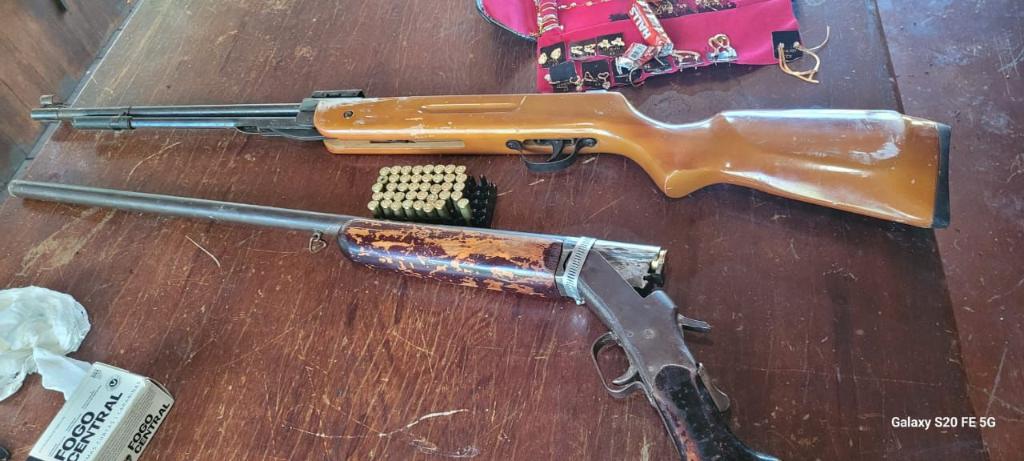 Além disso, durante buscas pelo local, os policiais militares encontraram duas armas de fogo, uma mala rosa contendo oito tabletes de maconha e diversas munições. Os suspeitos confessaram o roubo e o furto em outros dois ranchos, revelando que haviam alugado o local por R$ 2 mil de um advogado de Cáceres e estavam na região há duas semanas. Eles ainda contaram que um revólver calibre .38 havia caído no rio durante uma pescaria.