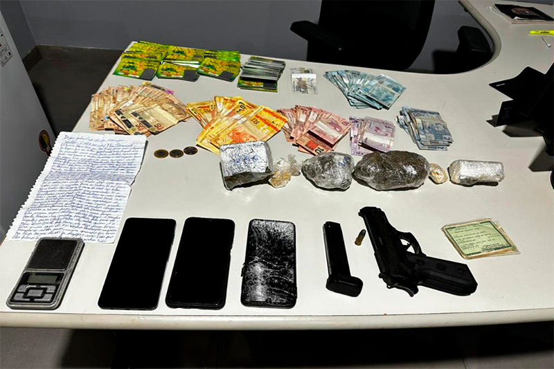 A ação resultou na apreensão de drogas, dinheiro, arma de fogo, munições e apetrechos relacionados ao tráfico. Os suspeitos foram autuados em flagrante pelos crimes de tráfico de drogas e associação para o tráfico.