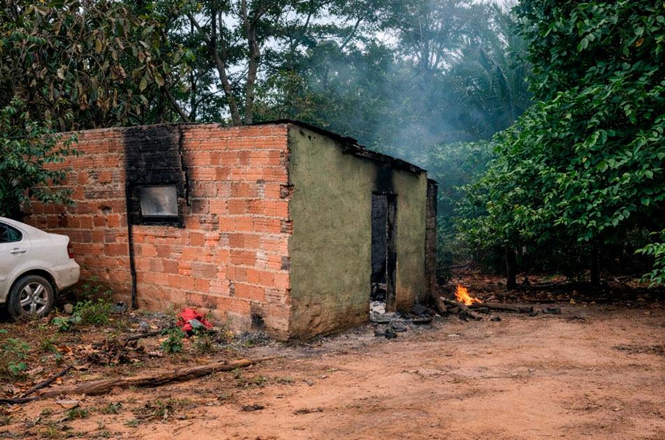 Os militares foram acionados por uma equipe do Conselho Tutelar informando que o homem teria ateado fogo em uma residência, nas proximidades da BR-174. No local, os policiais identificaram duas residências no mesmo quintal, uma delas estava completamente destruída pelas chamas.