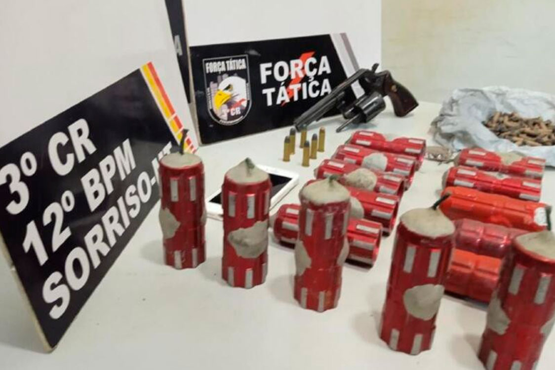 Jovem de 20 anos envolvido em um homicídio e tentativa de homicídio foi preso nesta segunda-feira (26), em Sorriso (420 km de Cuiabá). Com ele a polícia apreendeu diversos objetos, como granadas artesanais, um revólver calibre 38, munições do mesmo calibre, além de drogas.