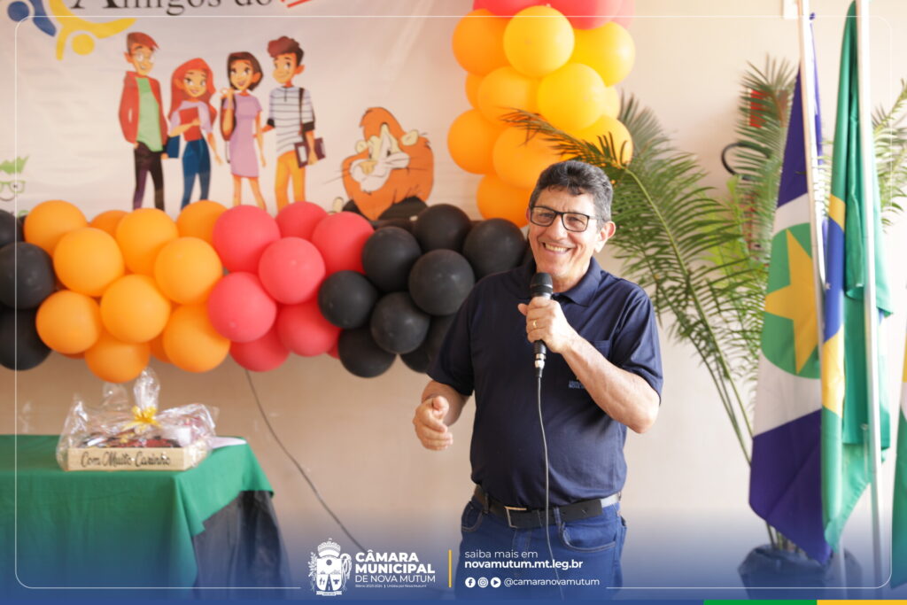 O presidente da Câmara de Vereadores de Nova Mutum, José da Paixão, participou na tarde de sexta-feira (04/08), da formatura do Proerd (Programa Educacional de Resistência às Drogas e à Violência) 2023, da E.M.E.B.I Marton Lucca. Participaram da cerimônia de formação o presidente da Câmara de Vereadores, José da Paixão, o prefeito em exercício Alcindo Uggeri, a secretária de Educação Elena Maria Maass Lima e a 3ª SGT PM Ana Paula.