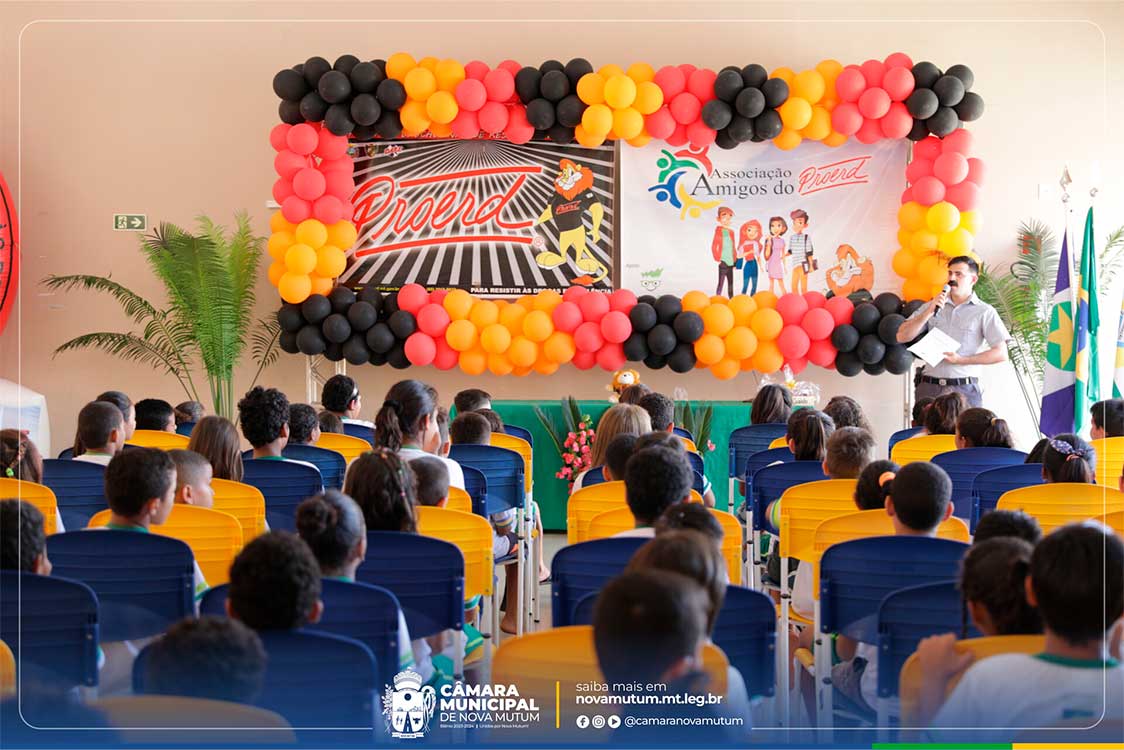 O presidente da Câmara de Vereadores de Nova Mutum, José da Paixão, participou na tarde de sexta-feira (04/08), da formatura do Proerd (Programa Educacional de Resistência às Drogas e à Violência) 2023, da E.M.E.B.I Marton Lucca. Participaram da cerimônia de formação o presidente da Câmara de Vereadores, José da Paixão, o prefeito em exercício Alcindo Uggeri, a secretária de Educação Elena Maria Maass Lima e a 3ª SGT PM Ana Paula.
