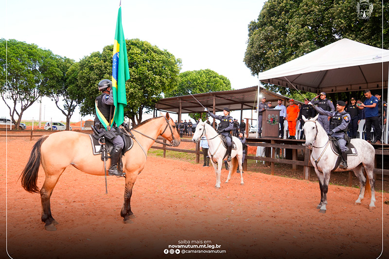 A Câmara Municipal de Nova Mutum participou, na quarta-feira (22), da solenidade de passagem de comando do 1º Esquadrão Independente de Policiamento Montado, realizada na sede da unidade local da Polícia Militar. O evento reuniu diversas autoridades civis e militares e destacou a importância da integração entre instituições para o fortalecimento da segurança pública e da convivência social no município.